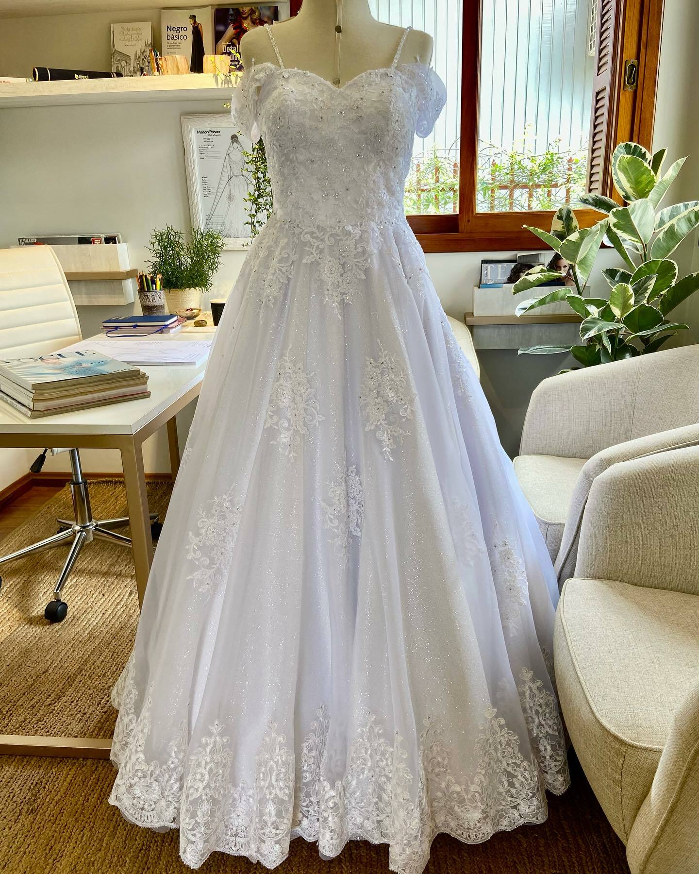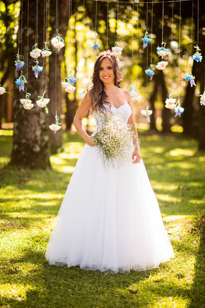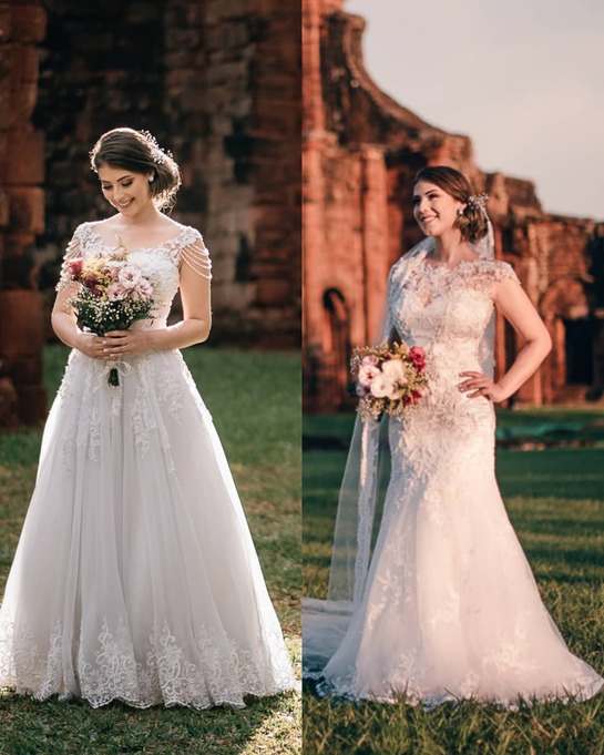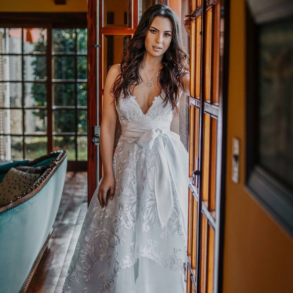 Este vestido é mais do que uma peça de vestuário; é uma obra-prima que captura a beleza intemporal e a elegância refinada, transformando o dia especial da noiva em um momento de pura magia e encanto.