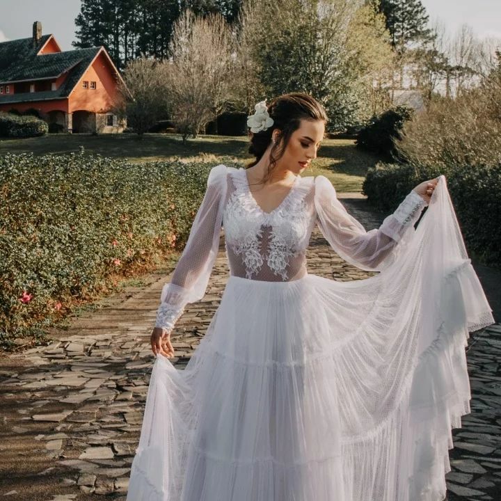 Nós compreendemos que o casamento é um momento de magia e significado profundo. Por isso, mergulhamos profundamente nas histórias pessoais de nossas noivas, compreendendo suas visões, suas esperanças e seus desejos. Cada vestido é uma colaboração, onde nossos designers guiam e inspiram, transformando ideias em realidade.